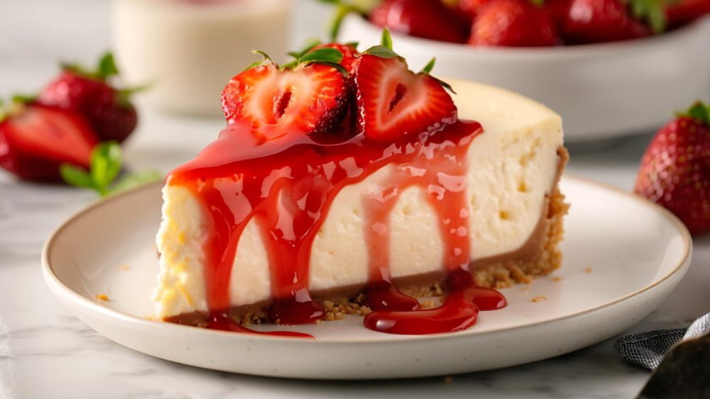 چیز کیک توت فرنگی یه دسر خوشمزه و شیکه که همونطور که از اسمش پیداست، ترکیبی از پایه کرمی چیز کیک و طعم فوقالعاده توت فرنگی رو با هم داره. پس با کیک توت فرنگی خانگی فرق میکنه و نمیشه اونارو باهم یکی دونست.